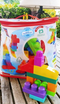 MEGA BLOKS First Builders Big Building Bag Toy Blocks with Blue Storage Bag for Toddler - 80pc