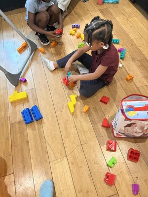 [This review was collected as part of a promotion.] We absolutely love this mega lock set. The size of the blocks is perfect for little hand and developing motor skills. The possibilities for things to build and create are endless. These keep my toddler entertained for a while independently, but we also enjoy building together! Definitely a toy we will get a lot of use out of.