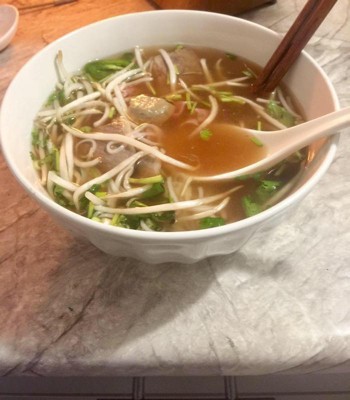[This review was collected as part of a promotion.] This is actually the perfect sized bowl to put my Pho takeout in and the spoon makes it more convenient to eat the broth. The chopsticks are made of a nice, smooth wood. The bowls are actually sort of delicate so you want to be careful not to accidently clink them together with another dish or you could end up with a chip. The set comes with 2 bowls, 2 spoons and 2 sets of chopsticks (Each chopstick is counted as 1 piece). I can't recommend these bowls enough if you love getting Pho takeout.