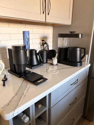 So far I’m happy with this grinder, it’s got a nice form factor that fits easily on the counter. The grinder is not super loud and grinds well. It matches the coffee maker and tea kettle as well.