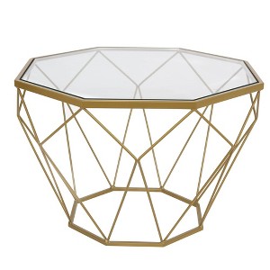 Product Name: LeisureMod Malibu Modern 22" Wide Octagon Glass Top Coffee Table With Iron base in Gold