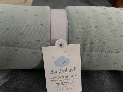 Get your baby cuddled up and comfortable at home or on the go with the Rayon from Bamboo Jersey Quilted Blanket from Cloud Island™. The rayon from bamboo fabric with added spandex is soft to the touch, sure to help your baby stay cool and comfortable whether you lay them down for tummy time or a ride in the stroller. Adorned with an allover dash pattern on a quilted backdrop, it makes a cute addition to your baby's nursery decor.