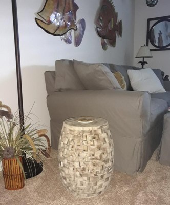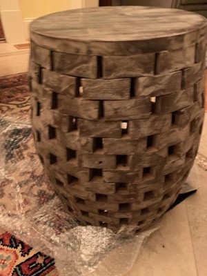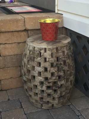 This stool/side table is a perfect compliment to my outdoor space. After a horrible rain storm last night the table is still in tact and in place. Heavy enough to remain in place. this stool will double as a side table for me and I look forward to using it everyday.