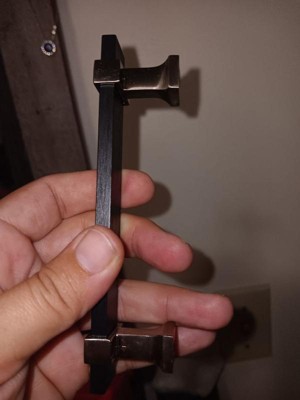 [This review was collected as part of a promotion.] The Amerock center to center pull is very durable. The design is very modern and goes great with dark cabinetry. Easy to grip and sturdy with each pull. Installation is very simply, just a few screws and it was done.