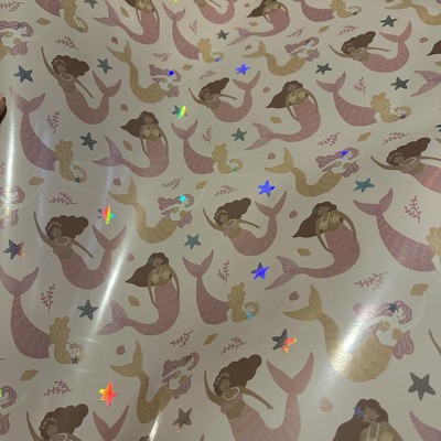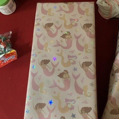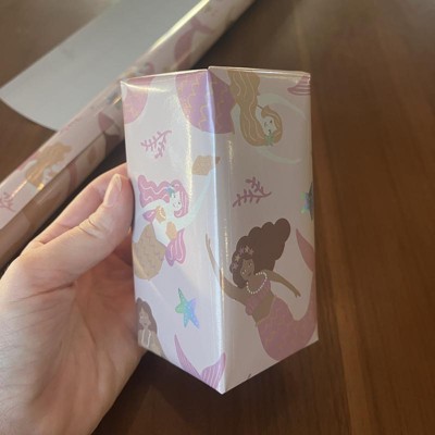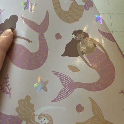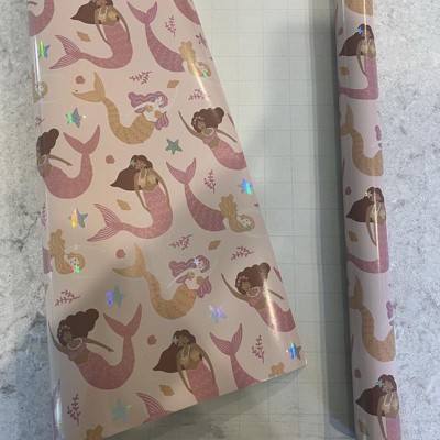 This is really nice wrapping paper. The mermaid illustrations are adorable in a modern muted color palette. I always appreciate the inclusive approach in skin tones vary when depicting characters or people. The quality of the paper is great. It is fairly heavy and doesn’t tear easily when cutting, which is great. The paper also has a semi shiny coating, adding to the durability. One fun aspect is that the starfish have a holographic shine, that would delight any child. I received an incentive to write this review.