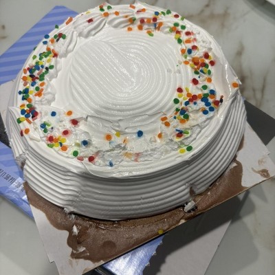 I am pretty picky about cake in general and ice cream cake is usually a favorite, but I was hesitant based on the mixed reviews. Well, I just sliced this (right out of the freezer, smooth as butter) and devoured it so fast I had to get a second slice LOL. My goodness this is delicious! I really love the whipped cream topping, so it's not overly sweet. The sprinkles add a nice touch, too. It is small, but it was only for me, so it's perfect for that. I would definitely recommend.
