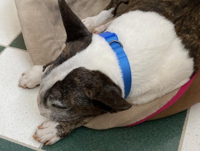 This collar is a pretty blue color. It is a bit hard to adjust the size but not bad once you figure it out. Could have gone up a size since it doesn’t have as much room as we would like but works like a regular collar.