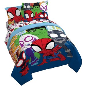 Calling all Spidey & His Amazing Friends fans! Combine playtime and bedtime with this Spidey & His Amazing Friends Bed Set! Kids will be excited to decorate their room with this bed set that is sure to dress up any bedroom dcor. Bedding features your child's favorite superheroes: Spiderman, Miles Morales, Ghost Spider, The Hulk, and the Black Panther. Sure to bring sweet dreams and endless smiles. At Sunny Side Up, our collection of bedding radiates sunshine and positivity. We believe in adding a touch of brightness to every bedroom!