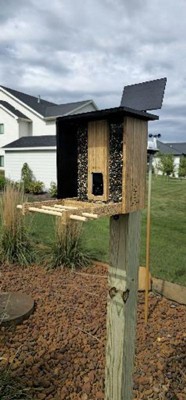 Love the look of the birdfeeder and so do the squirrels. They have chewed up the wood and the wiring to the solar panel - ugh!
