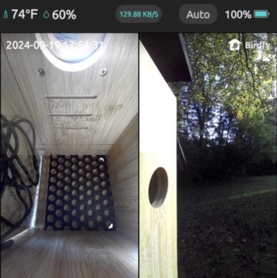 I purchased this nesting box this fall in hopes that I can catch some birds nesting over the winter. I already have 5 Birdfy products, the company is wonderful! The quality of this nesting box is amazing. The dual cameras both inside and outside should be able to capture the birds working and resting inside and coming and going. I can't wait to see what I capture, I will be putting it up this weekend!
