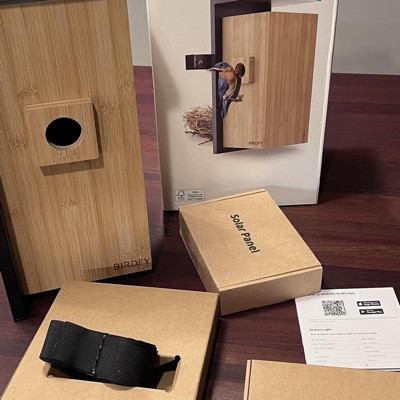 Wow! What a beautiful bird nest! The bird box is so well constructed. It's beautiful and high-tech. I can't wait to raise generations of birds in this box. The birds in my backyard will be fighting over this mini-mansion. The bird box comes fully assembled with two cameras—one outside and one inside. The inside camera has a dim light so you can see the baby birds. It’s so easy to set up. The solar panel is easily connected, and the Wi-Fi antenna has a good range. This is a bird nerd's dream. It has three different-sized holes, so you can decide what species of birds you want in your box. The bottom is vented for proper airflow. There is even a little cut-in ladder for the babies to climb out. Ugh. It's so cute. The side door allows for easy cleaning. It is pretty heavy so getting it on its final spot outside was a challenge. But once it was up its awesome. This nest box is well worth the cost. Its a great present for any bird lover.