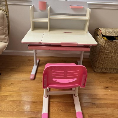 Costway Kids Study Desk Height Adjustable Children Writing Table w/ Tilt Desktop Blue