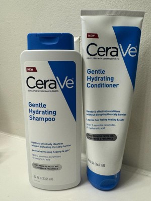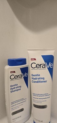 Haircare reinvented with dermatologists. This clinically tested Gentle Hydrating Conditioner supports a haircare system that cleanses and conditions hair without disrupting the scalp barrier. The formula with 3 skin identical ceramides, niacinamide, and hyaluronic acid was developed with dermatologists and gentle on scalp and hair. It is pH balanced, allergy tested, suitable for sensitive scalp and free of sulfates, MIT, dyes, parabens, phthalates & fragrance. Scalp & hair feel hydrated for up to 72 HR.* Hair is 5X more hydrated and 10X smoother with just 1 wash.** Together with CeraVe Gentle Hydrating Shampoo, the Gentle Hydrating Conditioner leaves hair feeling healthy and soft. Suitable for all hair types, curl patterns, color-treated hair, and ages 13+. *In a consumer test, after one use of gentle hydrating shampoo + conditioner **system vs. non-conditioning shampoo