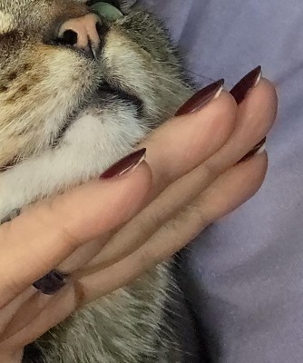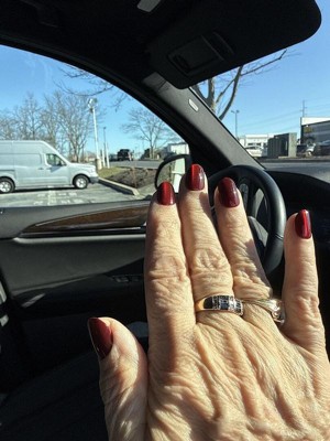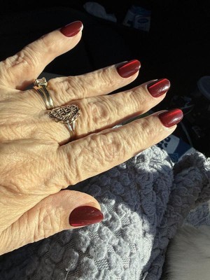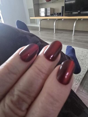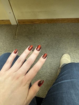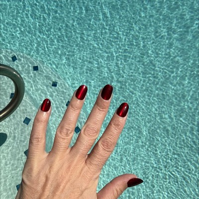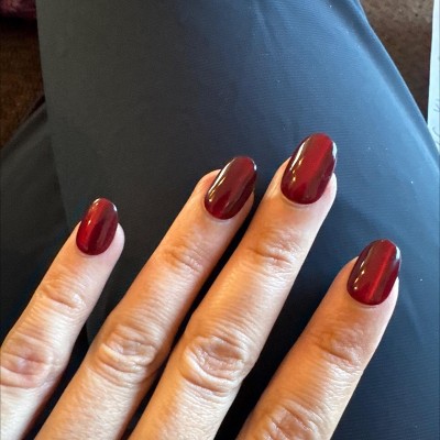 These are bonkers. I put them on expecting them to come off after a couple of days because that's what they normally do and I don't normally wear press on nails anyway. but this is the first time buying this brand and it was cheap. I put them on when I was in a meeting because sometimes keeping my hands busy helps me focus and I fully expected them to fall off in a day or two just like I normally like, cuz I don't like usually having long-term commitments to nails, that's why I won't do acrylics . that being said that was two flipping weeks ago!! These were fantastic for achieving a Russian manicure look because they are angled in a way where they slide right under your cuticle so if you've trimmed them back nicely it looks stunning. I got multiple compliments a day on the color. But you know what's pretty cool? it doesn't matter what color you buy because they hold regular Lacquer nail polish perfectly. I wanted to have them off so I could try a nail polish that arrived that I had ordered and they were on like they were never going anywhere ever again, so I tried painting one of the spare nails and you don't even need to buff them. I did one buffed and one without and the result was Flawless either way . so notice my pictures are of a different color that's because they're from when I painted it but you can also see if you look really really closely the little bit of the red border . I open soda cans with this, play with toddlers type all day take my dog for a walk carry my dog make the bed do the dishes literally all of the things - I am very hard on my hands it's one of the reasons I don't usually have nails - and not only have these lasted throughout, they've kind of changed my mind about having these more these more often. I've only gotten acrylics three times in my life and all were for weddings and I could not wait to get them off I hated having them on my hand. These feel fantastic and I know are much easier to remove once I get to that point and find out how to do it! I have literally never removed fake nails before because they've always popped off within a couple of days which was my expectation with this The only thing I don't like is I bought the oval and I'm realizing I either need to buy medium instead of short or buy squoval due to my own nail shape and that was my mistake not the way that they were made. but the solution to that was just me needing to trim the corners of my nails in a strange way. I found a picture of earlier when I had them and you could see I had not figured out the trimming them thing yet but you can see a hint of the red. But I absolutely love these and I now consider myself a convert.