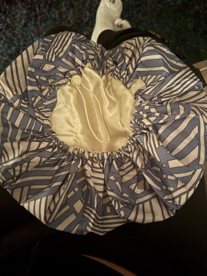 Keep your hair secure and dry in the shower with this Adjustable Shower Cap from up&up™. Made of plastic, this shower cap features an adjustable toggle for a customizable fit . The water-resistant exterior helps shield hair in shower, while the satin lining prevents tangles and frizz while sleeping. Boasting abstract prints for a fun look, this shower cap is suitable for most hair types.