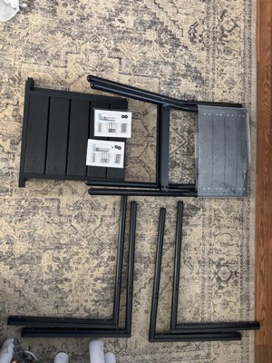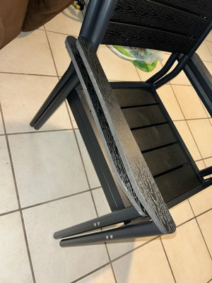 [This review was collected as part of a promotion.] These are such good quality and very easy to put together. I love that they have adjustable feet Wich helps if they are a little wobbly. I like the black wood detail the edges in the arms are a little rough feeling, but that’s my only complaint. (Photo inside due to snow)