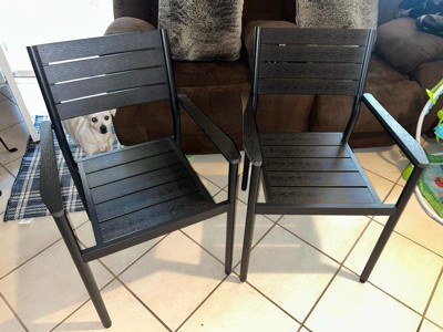 [This review was collected as part of a promotion.] Love these patio chairs! They came in a set of 2. They are very good quality yet easy and light to move. They look very sleek and stylish. Feel very sturdy and are a great size. They have arm rests which are a huge plus! I cant wait to throw some cute outdoor pillows on them to jazz them up a bit more.