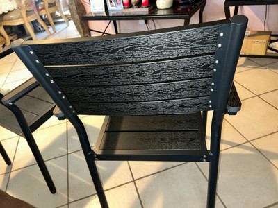 [This review was collected as part of a promotion.] This chair was very impressing. •The packinging was put together very carefully so the items wouldn't damage upon arrival. •It was very easy to put together while having my baby and toddler close by. •It has a black look with wood finish to have that natural earthy feeling. Because of its finish, it'll be very easy to keep clean. •The chair is actually very light weight, but feels and looks sturdy. Overall, I'm very please with these chairs and happy with how it looks. Can't wait to set up my back porch all nice with these chairs. Thank you