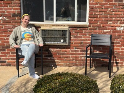 [This review was collected as part of a promotion.] These aluminum outdoor chairs are great for small spaces. They are sturdy and durable while still being easy to assemble. I love that they are stackable as well to make room when needed.
