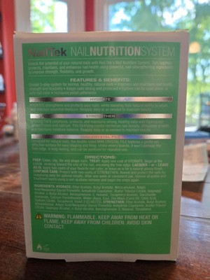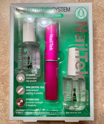 [This review was collected as part of a promotion.] I love the Nailtek Nail Nutrition System. The glass nail file is great for shaping and not too rough of a file. The clear hydrate polish helps to moisturize my nails and minimize splitting and peeling. The strengthen polish helped to prevent breakage. I love that it comes all in one kit.