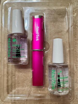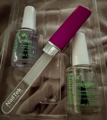 [This review was collected as part of a promotion.] NailTek pack. It contains a crystal file which works well. It also contains a strengthening polish and Hydrating polish. Both work well. Good value for your money. The packaging is great. I would definitely recommend.