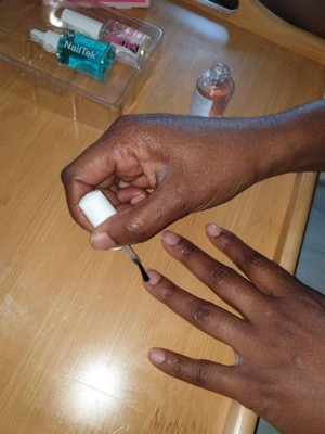 [This review was collected as part of a promotion.] I received this product for free in exchange for my honest review. I have short stubby nails and always willing to try something to hydrate and strengthen my nails. It is hard to tell if my nails are stronger since I keep them short but I like the idea of the product keeping my nails healthy. This product is easy to apply but it is 3 steps. Not sure if a busy mom has the time but I quickly go through the steps. The challenge is the products are very stinky and even after drying completely you get the strong scent and it takes at least 30 minutes after drying for the scent to completely go away, but the scent gives me a headache. The product does last a long time on your nails. I get no irritation. I would recommend if you have frail nails.
