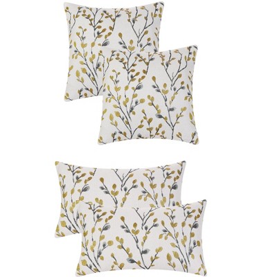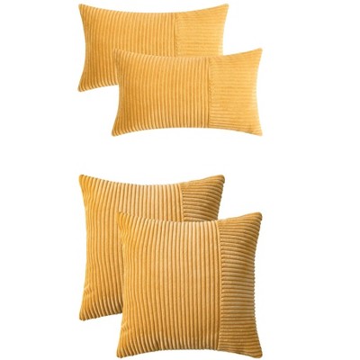 Unique Bargains Home Decor Solid Soft Short Plush Throw Pillowcases 4 Pcs Yellow 12" x 20"/18" x 18"