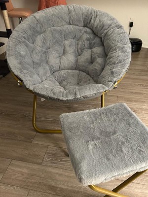 Flash Furniture Folding XL Faux Fur Saucer Chair with Ottoman - Dusty Purple/Soft Gold
