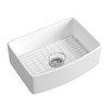 Fine Fixtures Premium White Fireclay Curved Apron Front Kitchen Sink for Home, Farmhouse (Grid & Strainer Included)