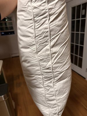 High quality pillows! Haven’t had a down pillow since I was a kid, and I totally get the hype. I love that they are so easily moldable, can double, squish, and get the fullness where I want it. No smell! No stiff feathers or prickly spots. My husband wasn’t as much as of fan, he prefers a much fuller pillow.