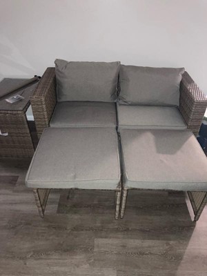 [This review was collected as part of a promotion.] This modular loveseat set is a great combination of style, comfort, and versatility. The design is clean and modern, and it works beautifully both indoors and outdoors. I love that the pieces are modular—you can easily rearrange the loveseat, ottomans, and table to fit different spaces or layouts, which makes it perfect for smaller patios, balconies, sunrooms, or even a cozy indoor corner. The woven rattan construction feels sturdy and well-made, and it holds up nicely to outdoor conditions. The cushions are comfortable with just the right amount of support, not too firm and not too soft. I also really appreciate that the cushion covers are zippered, washable, and water-repellent, so maintenance is easy—especially for outdoor use. The ottomans are a great bonus. They work perfectly as footrests, extra seating, or even tucked under the chairs to save space when not in use. The table is solid and practical, with a tempered glass top that looks sleek and holds drinks, snacks, or décor without feeling flimsy. Overall, this set feels durable, comfortable, and thoughtfully designed. It’s an excellent choice if you want something compact but functional, stylish yet practical, and flexible enough to use year-round. Definitely a great value for anyone looking to upgrade their indoor or outdoor lounging space.