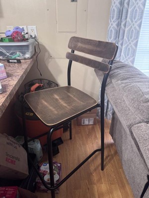 [This review was collected as part of a promotion.] The solid wood seat feels sturdy and well-made, paired with a strong metal frame for excellent stability. The antique finish adds a timeless industrial charm. Comfortable to sit on and perfect for kitchens, bars, or commercial spaces.