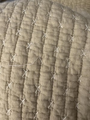 This quilt so so dreamy. The gray color is perfect love the detail white stitching of the x's and the added trim to the shams is so pretty. Love this set.