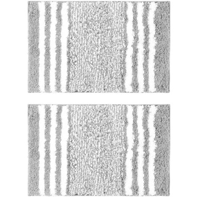 Unique Bargains 2 Pcs Striped Microfiber Extra Soft and Absorbent Fluffy Non-Slip Bathroom Floor Mats Beige/Grey 20" x 32"