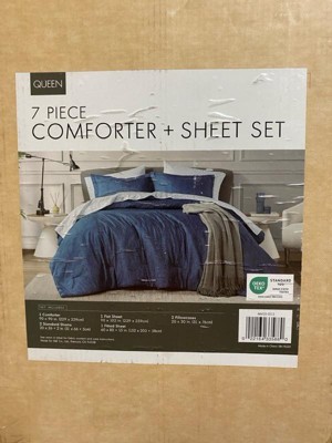 510 Design 7pc King Camden Chambray Print Microfiber Comforter Set with Bed Sheets Navy Blue: Modern Contemporary, OEKO-TEX Certified