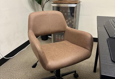 I chose this chair for a work office to add some style and an elevated look as oppose to using a typical black mesh chair. Because the room is small I also needed something compact and this was the perfect size. The shipping was quick, assembly was a piece of cake, the chair rolls amazingly smoothly, the faux leather feels soft almost like a velour and the backing and seat feel plush and very comfortable. I ordered three more to go around the table.