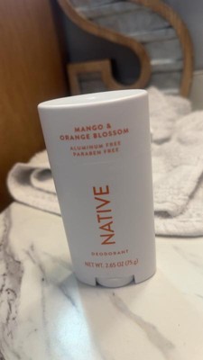 [This review was collected as part of a promotion.] By far my favorite smelling deodorant! The mango and orange blossom scent is so fresh and leaves me smelling pretty good even after a big workout. I always shop for aluminum and paraben free so I am happy with the ingredients Native uses.
