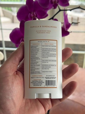 [This review was collected as part of a promotion.] This deodorant has a smooth, creamy texture that applies easily without feeling sticky. It keeps me feeling fresh throughout the day , and the vanilla & sandalwood scent is warm, soft. Great for daily use and gentle on the skin