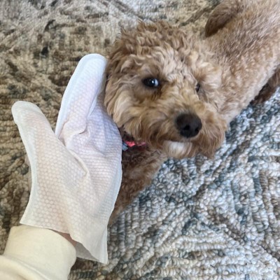 We are constantly wiping our dogs down, especially one who has perpetual eye gunk. I have used other wipes before, but this is the first time trying one in a mitt form. Overall, it was easy to use and completely unscented. The packaging was a little tricky to get open, but I its nice that it’s resealable. I think it would be better if there were finger holes instead of a mitt, but it was effective as is. I would recommend. I received an incentive to write this review.