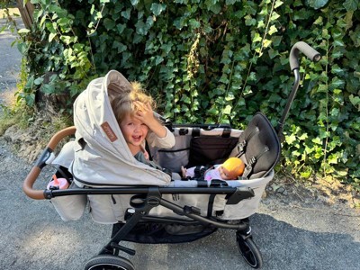 [This review was collected as part of a promotion.] Okay first off let me say this is definitely five stars but it’s not a smooth transition from stroller to wagon. But overall I love this!!! And actually looking forward to wagon mode with a toddler and a newborn in a car seat. It’s definitely keeps them safe for a fun ride in all terrains.