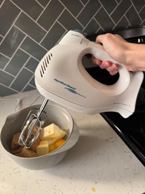 Hamilton Beach 6 Speed Hand Mixer with Snap-On Case 3 Attachments Quickburst White 62695V: 250W, Dishwasher-Safe Parts