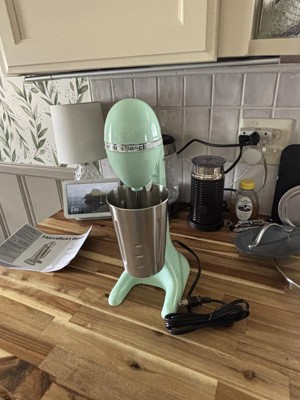 [This review was collected as part of a promotion.] This retro blender is so easy to use. My family and I like to make milkshakes and smoothies with it. The metal cup is just the right size and it attaches easily to the metal arm. It blends quickly and in a matter of seconds your drink is ready. The mint color is really pretty and it nicely matches my kitchen decor. It doesn’t take up much space on my counter and is really easy to wash. We love this blender!