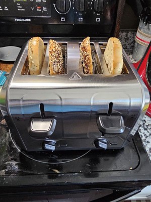 [This review was collected as part of a promotion.] The 4-slice stainless steel toaster has a sleek design and is easy to clean. Larger items such as bagels and English Muffins fit in the larger slots. It also has an "easy lift" feature to remove items from the slots to prevent using your hands to directly remove items. This toaster is also good for larger families so that you can toast more items at once.