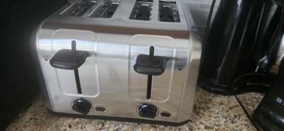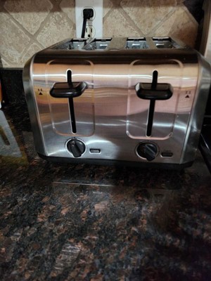 [This review was collected as part of a promotion.] Hamilton beach brushed stainless steel 4-slice toaster is beautiful. i love that it has 4 slots and i can toast multiple items at the same time i have a large family and it saves me alot of time when i can toast everything at the same time instead of having to wait on something to toast two at a time.