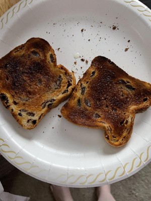 [This review was collected as part of a promotion.] Works very well. Super nice that its a 4 slice. We have a big family. Has large cancel buttons, and each has their own number for darkness. Nons seem durable. Fits bagels too wiithout smashing them. its amazing. I highly recommend if you make alot of toast and bagels. Cords long. Is bulky since its 4 slices.