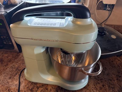 [This review was collected as part of a promotion.] Loving this Hamilton beach mixer! The light blue color is gorgeous and looks great along with my other decor in the kitchen. I found the mixer easy to use and worked great making homemade cinnamon butter! I like how it has suction on the bottom to help keep it in its spot while it is being used! I also like the built-in handle and chart that it has under the handle!