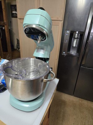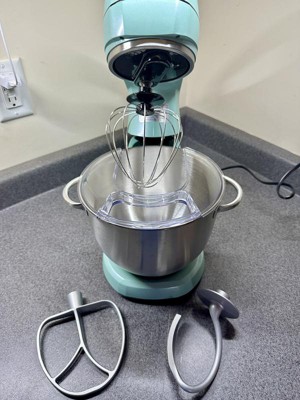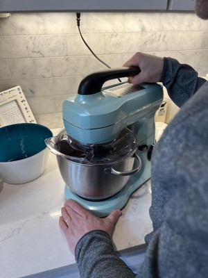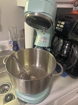 [This review was collected as part of a promotion.] This is the best mixer I have ever owned. I am tired of trying to lift and move a huge, heavy mixer. I don’t have a big kitchen, so I need to move my mixer when I’m not using it. This is small, but mighty does all of your mixing jobs so well but lighter in weight. I love the beautiful blue color! Matches any decor. Super convenient handle on the top to move and store. Stainless steel bowl locks in simply by turning so it does not come out during use. Easy tilt back top to make it so simple to remove your beater attachment and also to remove the bowl. Easy turn dial on the side to adjust your speeds and to turn off the mixer. Includes attachments for mixing whipping and making bread. So easy to use it’s my new favorite kitchen appliance I find myself using it for everything.