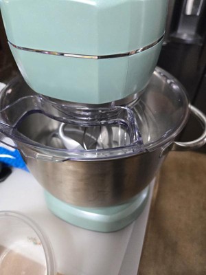 [This review was collected as part of a promotion.] I was so excited when this showed up at my door!! It’s so stinking cute!! The teal color is adorable and I love the additional heads included! Obviously it can get too heavy when the bowl is out and the head is open but once it’s set on an even flat counter it works like a dream! I love it so much and so do my kids, the splash guard is a literal life saver btw!