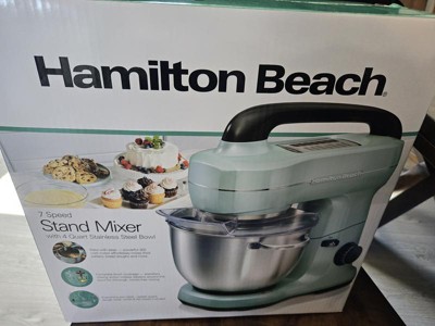 Hamilton Beach Stand Mixer with 4 Quart SS Bowl 7 Speeds 300 Watt Aqua 63397: Metal, Dishwasher-Safe Parts, 1-Year Warranty
