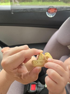 [This review was collected as part of a promotion.] Sweet vanilla cookie, a little crumbly with texture residue left on hands. Has a great flavor, tasting like a sweet treat while providing multi-grain benefit. It has a soft texture, easy to chew. My toddler loved the shapes and had fun pretending while enjoying their snack. Their favorite was the car. Zooming around before taking a bite. Great for on the go, snack in between or as an addition to their meal. No complaints.